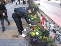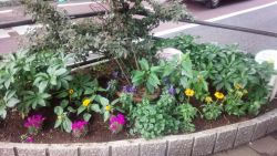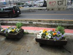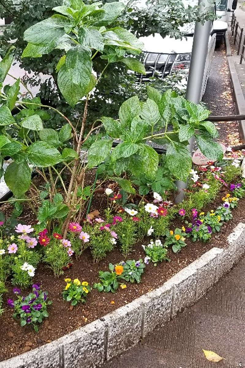 さくら通りの大和田第一ビル前に8プランター並んで設置いたしました。
