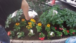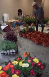 コスモスの植栽とコスモス設置協力店への配送作業を行い、