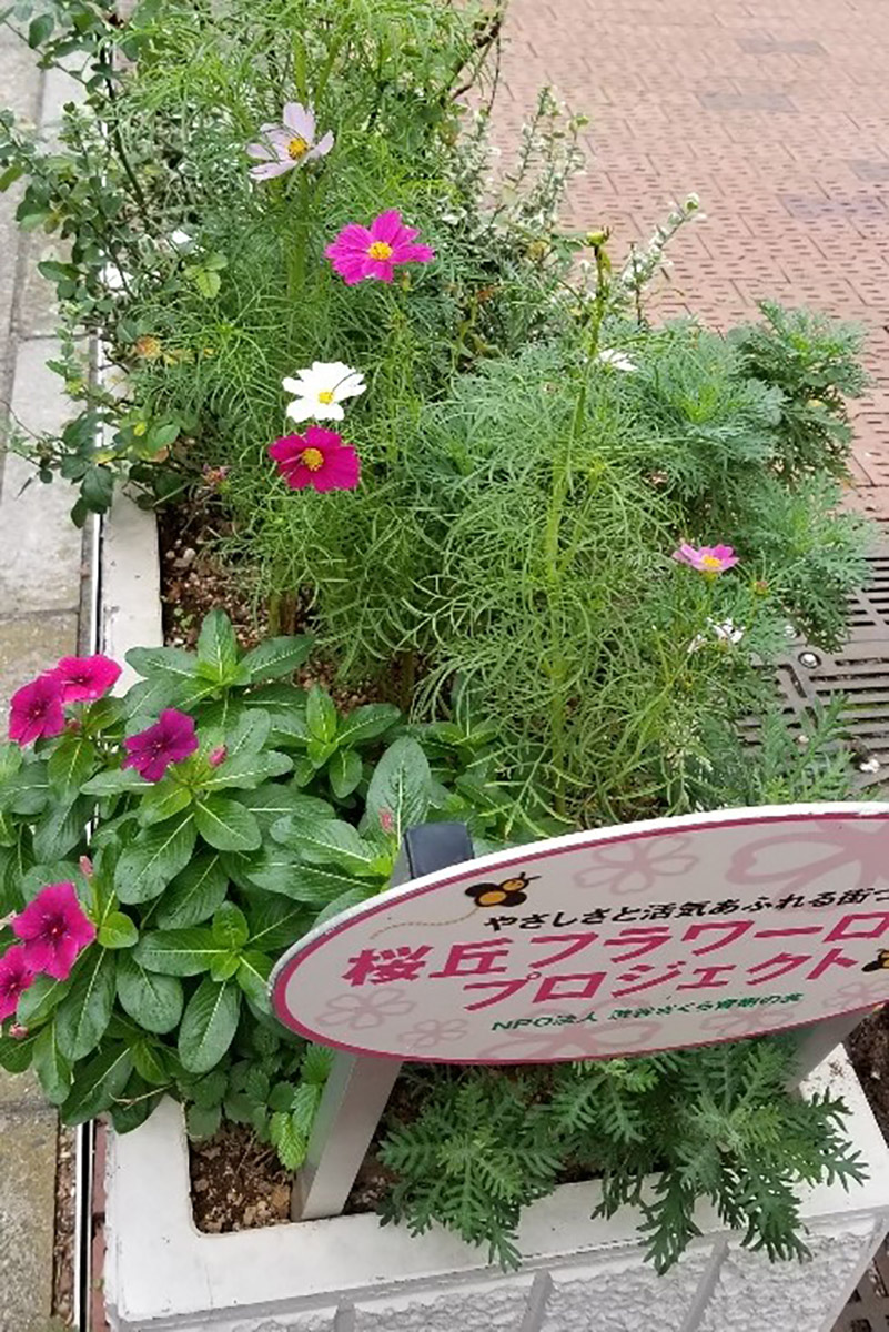 桜丘をコスモス(秋桜)で飾花いたします。